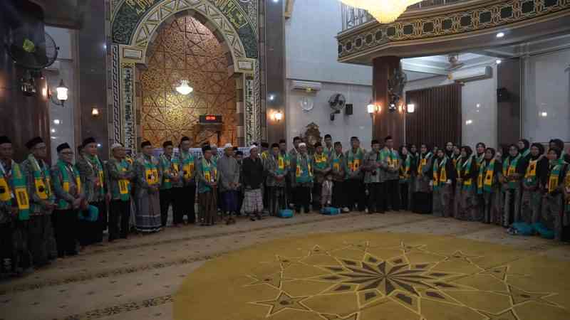 Prosesi pemberangkatan jemaah umrah di Masjid Jami' Baitul Mukminin Hadipolo, Kecamatan Jekulo, Kudus | jurnalpantura.id |